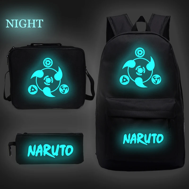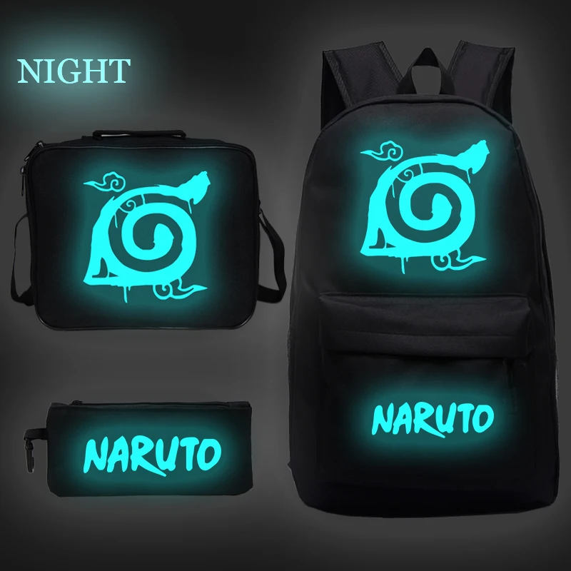 Женский рюкзак в стиле аниме Наруто, 3 шт.компл., сумка для обеда, пенал, рюкзак для путешествий, школьные сумки для девочек-подростков, сумка для ноутбука