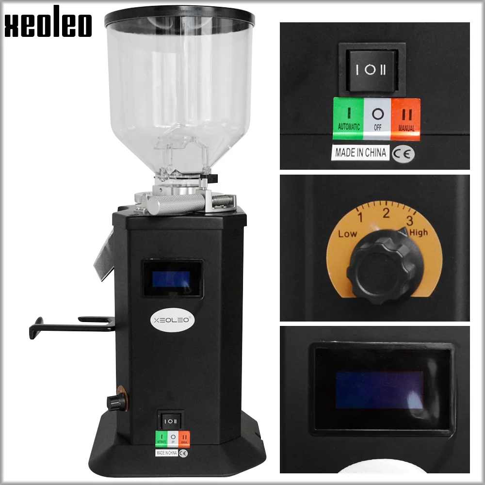 Электрическая кофемолка XEOLEO, автоматическая кофемолка 74 мм, плоская заусенная кофемолка, 15 шагов, регулируемая, 110220 В