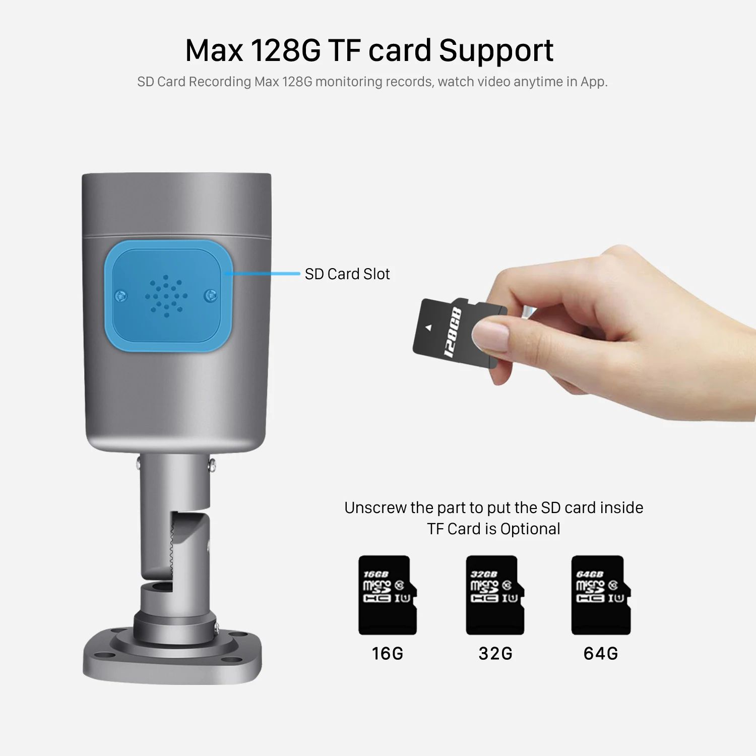 Вы можете найти слот для sd-карты внутри, камера поддерживает макс. 128 ГБ sd-карты, вы можете записывать и воспроизводить видео sd-карты в приложении напрямую.