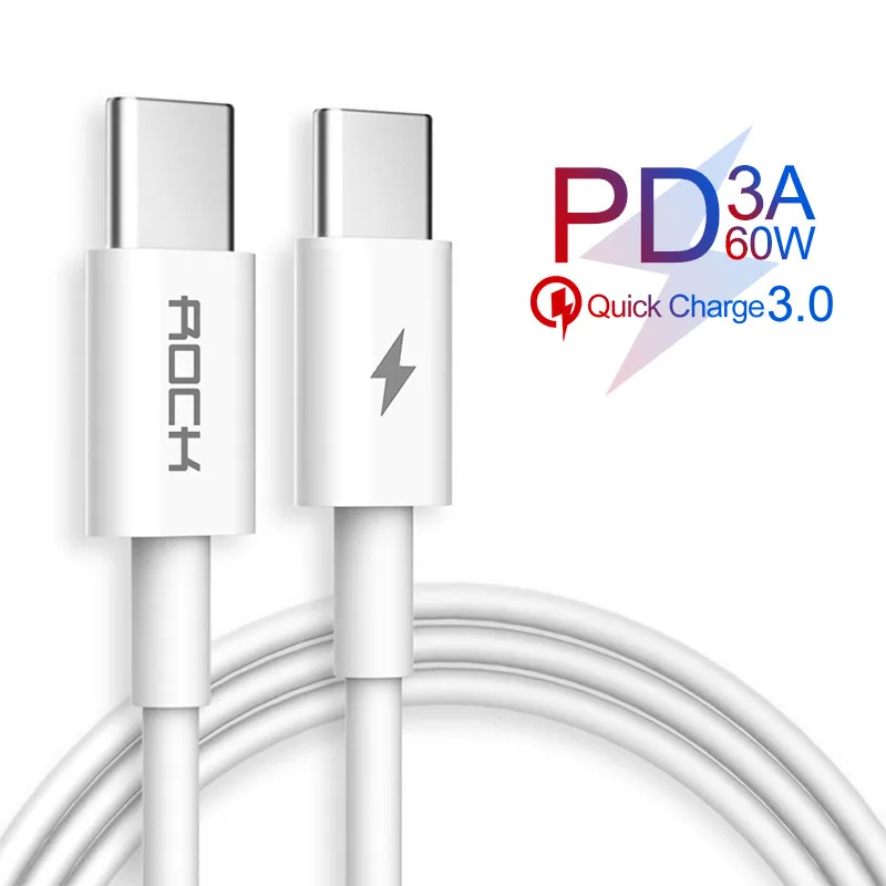 Кабель ROCK PD для быстрой зарядки, USB Type C к Type C, кабель для Samsung Galaxy S9 Plus, Xiaomi, поддержка PD 60 Вт, QC4.0, кабель для быстрой зарядки