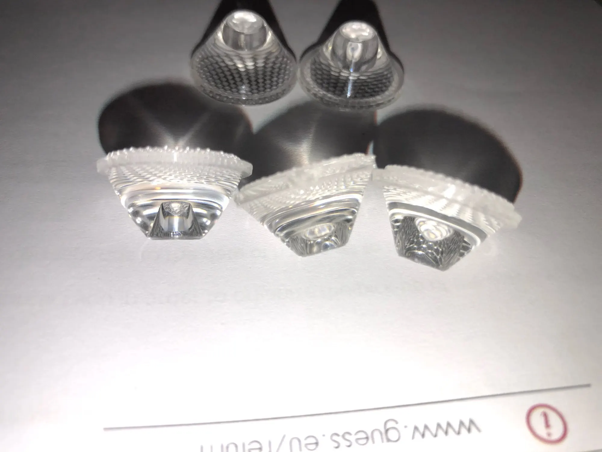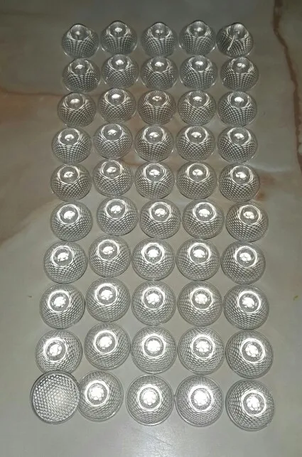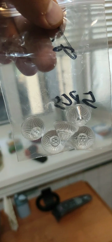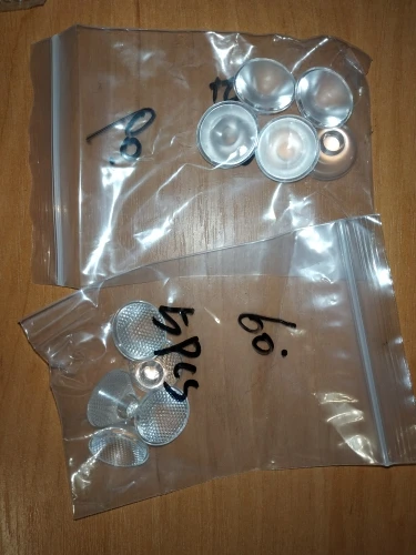 Просил продавца прислать разных , по одной- две штуки ! Качество литья, прозрачность- отличноя! Для фонаря боруит, из кучи поставил себе на 60°! Единственное, световой поток чуть снизился..Не намного, но все же стало чуть тусклее, по сравнению с боруитовским отражателем!