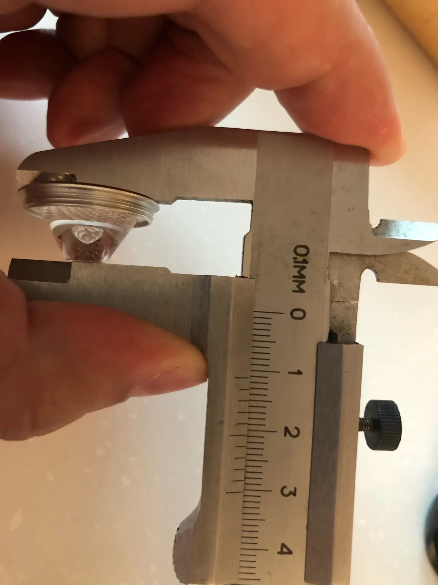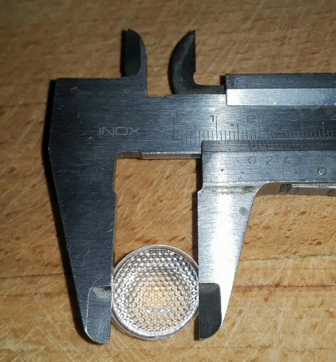 Попросил продавца прислать 45, 30 и 8гр (других не было в наличии). Все ок, большое спасибо продавцу! Пришли три пакета, как заказывал. Диаметр по ободку - 20мм ровно. Диаметр рифленой части - 17,5мм. Высота вместе с рифленой частью: у 8гр - 10,9мм, у 30 и 45гр - 10,8мм-11,1мм. Высота ободка у 8гр - 1мм, у 30 и 45гр - 1,5мм. Ставил в фонарь Sofirn SP40, 4000K, в принципе доволен, пропало желтое пятно по центру спота. Разницы между 30 и 45 не увидел, да и не могу определить, кто из линз кто, перепутал, пока ставил. На фонаре оставил ту линзу, у которой не глубокий широкий колодец. Снял по ободку на наждаке 0,6мм и сточил по высоте 0,6мм. Линза встала со штатной уплотнительной резинкой. На фото сверху с ТИР линзой, снизу такой же фонарь, но со штатным отражателем и стеклом.