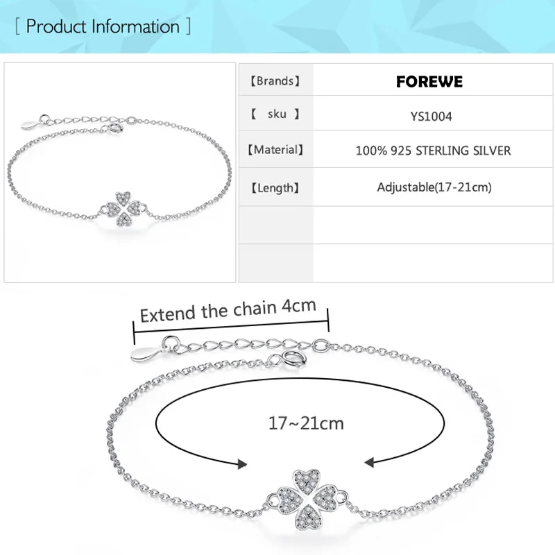 Женский браслет из серебра 925 пробы, с шармами и сердечками клевера