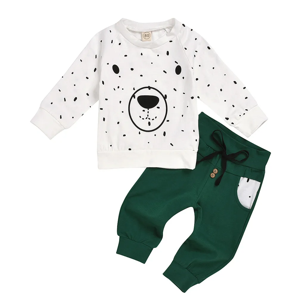 Одежда для новорожденных детская одежда для маленьких мальчиков roupa infantil, свитер с рисунком медведя топ + штаны, комплект одежды, бесплатная доставка, Z4