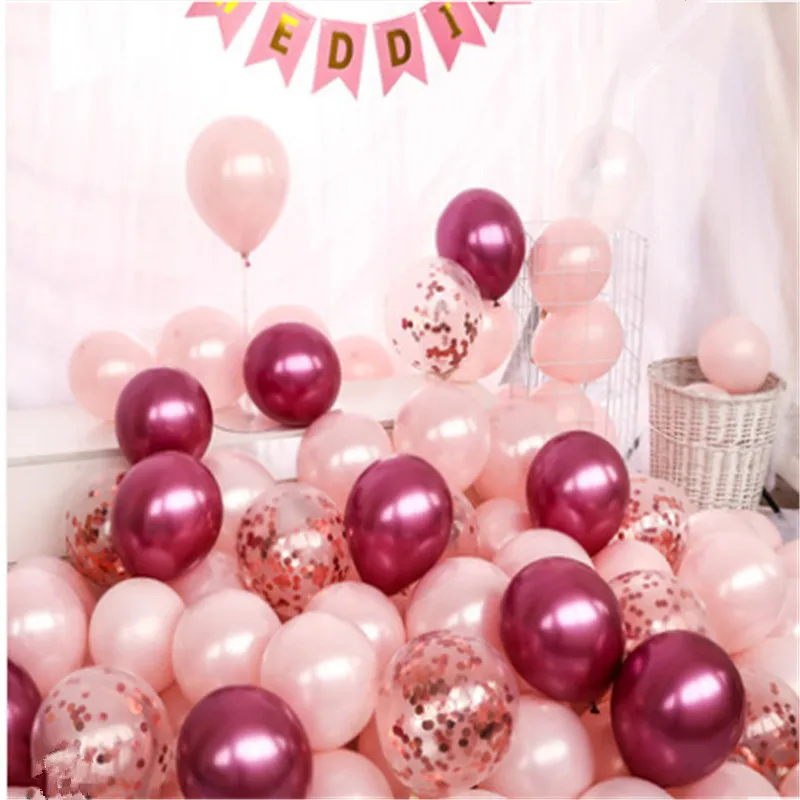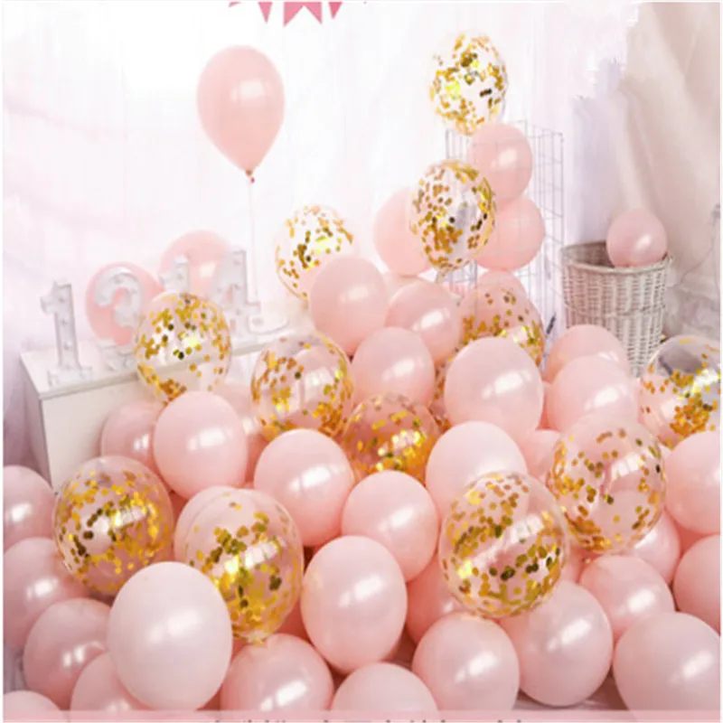 1020 шт., 10 дюймов, прозрачные жемчужные розовые воздушные шары с конфетти цвета розовое золото, декор для свадьбы, дня рождения, хромированные металлические шары