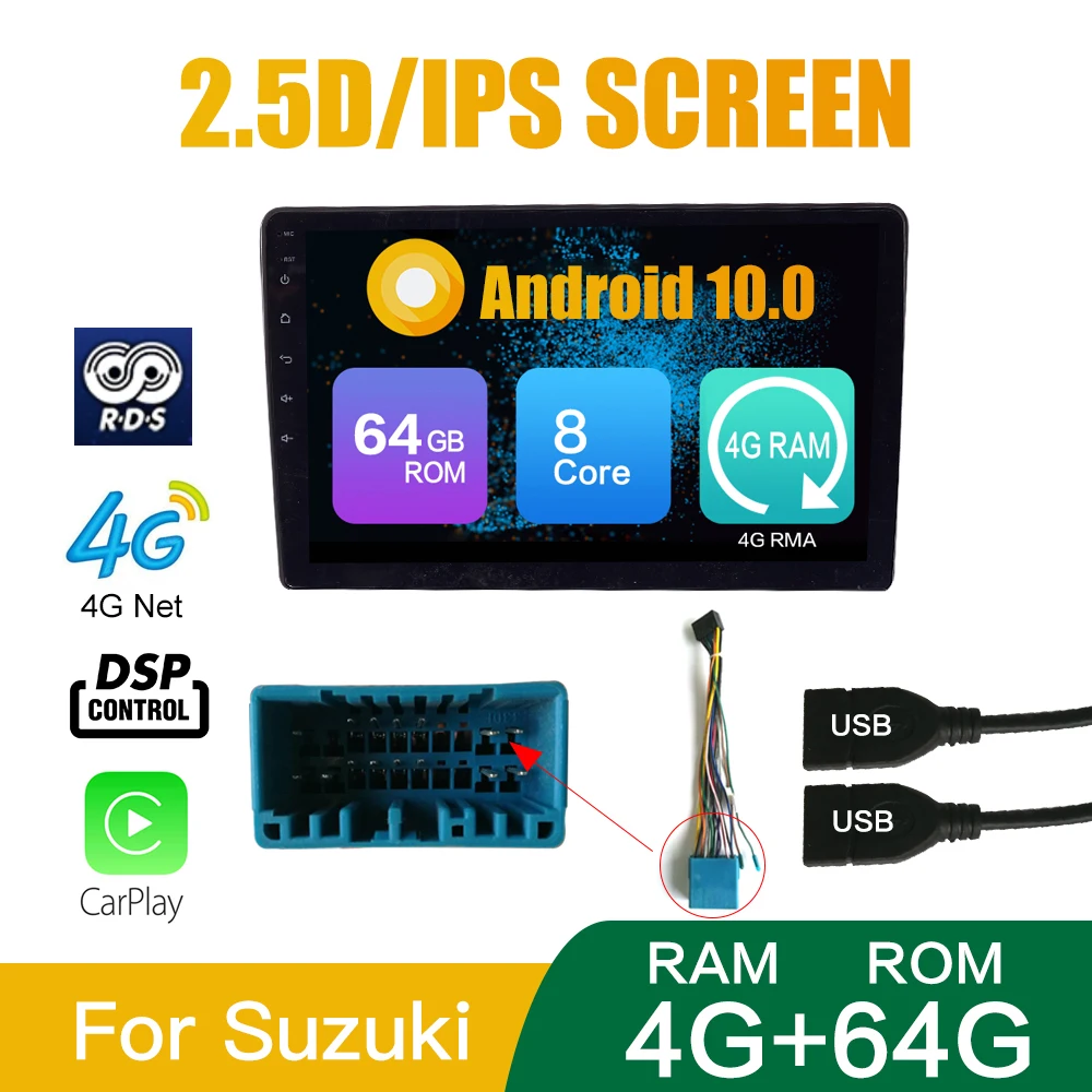 9 дюймов 10 дюймовВосьмиядерныйAndroid 10,0 4 Гб ОЗУ 64 Гб ПЗУ автомобильный Радио мультимедийный видео плеер Авто Стерео GPS карта для универсальной Toyota Nissan Suzuki ISO