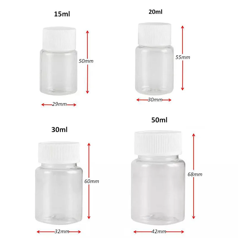 15 мл/20 мл/30 мл/50 мл прозрачные пластиковые ПЭТ многоразовые флаконы для уплотнения флаконы контейнер для хранения реагентов пластиковая крышка