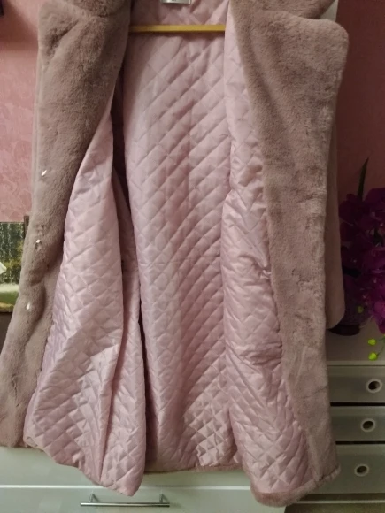 Шуба, очень хорошая, я довольна, спасибо али за нее, xxl на 52 размер сел отлично, теплая, буду ждать зиму, чтобы одеть, легкая, в ней очень уютно, спасибо.