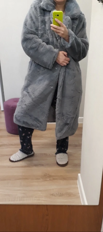 Шуба приятная наощупь, даже слишком, теперь все мои друзья обнимают меня ради того, чтобы её потрогать:( Маломерит, заказала 2XL, хотела прямо оверсайз, но она оказалась всего на размер больше, мне кажется. В минус 10 ходила, если под ней шерстяная кофта - очень тепло, но не для уральской зимы все же.