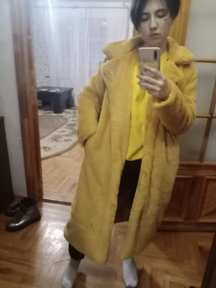 Хорошая шубка, очень приятная на ощупь. Правда на фотографии жёлтый ярче чем в жизни. Чувствуется, что достаточно теплая. Прислали очень быстро