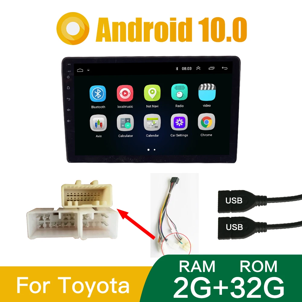 Автомагнитола, мультимедийный видеоплеер, 10 дюймов, 2 Гб ОЗУ, 32 Гб ПЗУ, Android 10,0, универсальная стереосистема, Bluetooth, управление рулевым колесом