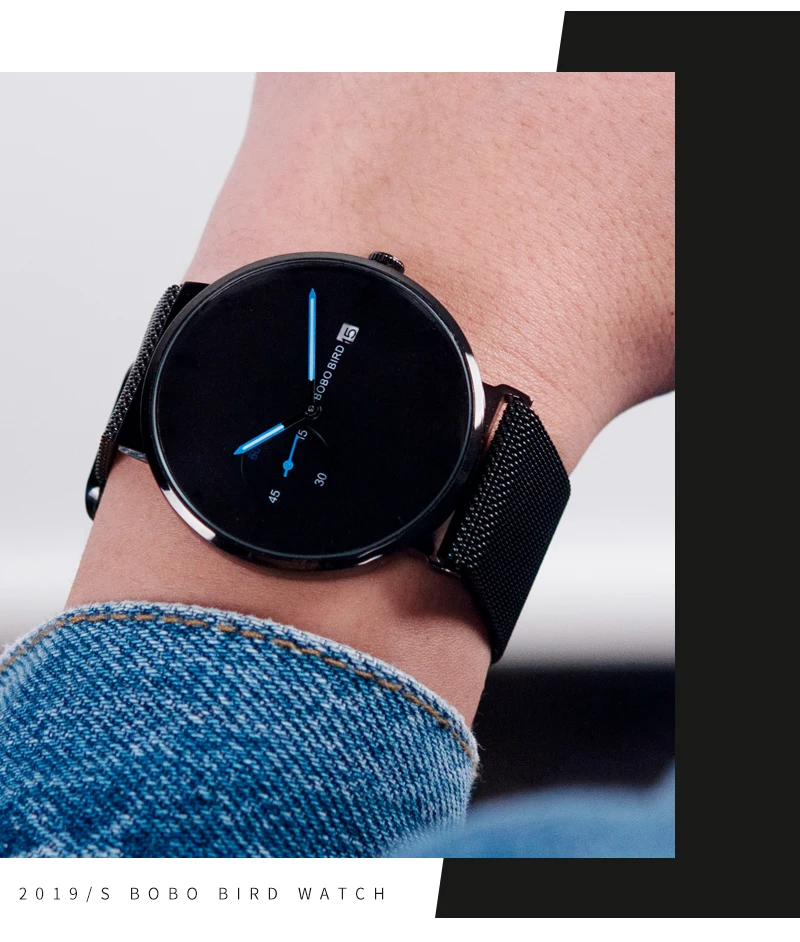 Часы мужские BOBO BIRD relogio masculino, ультратонкие наручные из нержавеющей стали, с гравировкой и датой, с именем под заказ