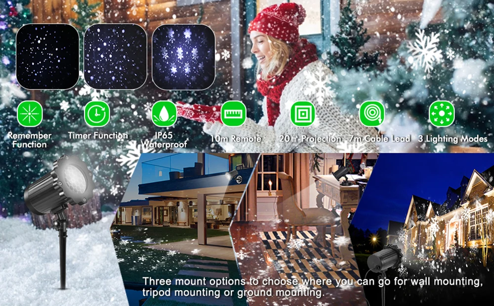 Уличный лазерный светильник в виде рождественской снежинки, вращающийся прожектор с эффектом снегопада, сценический светильник на новый год, вечерние садовые товары, ландшафтный светильник s