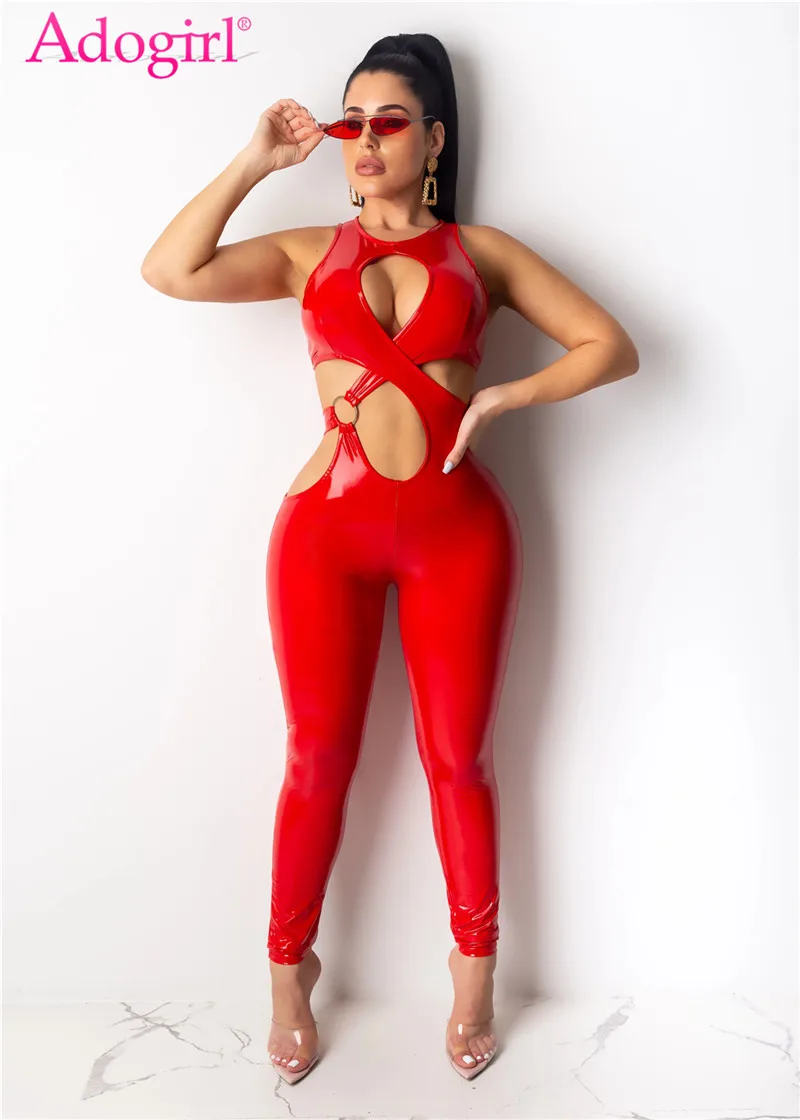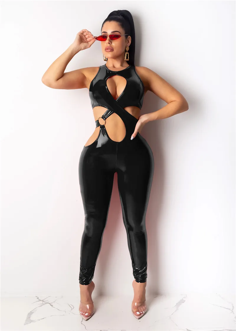 Комбинезон женский из искусственной кожи, на флисе, без рукавов, с вырезами, зимний, 2019