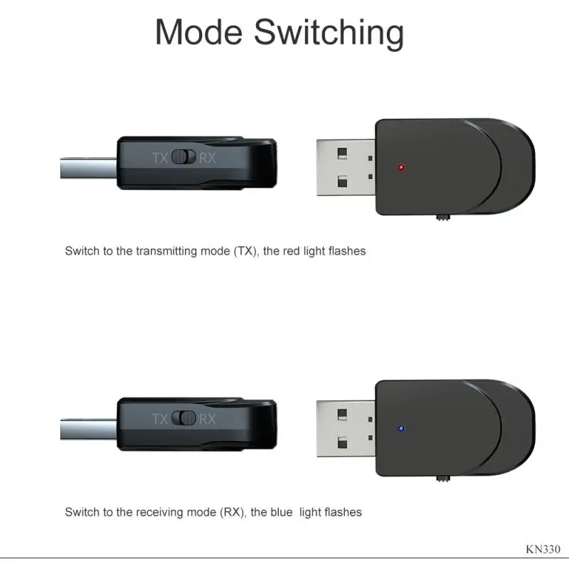 Подключите KN330 к usb (DC 5V) и подтвердите, что он находится в режиме TX (красный светильник). KN330 будет автоматически искать bluetooth-гарнитуру или bluetooth-динамик сопряжения.