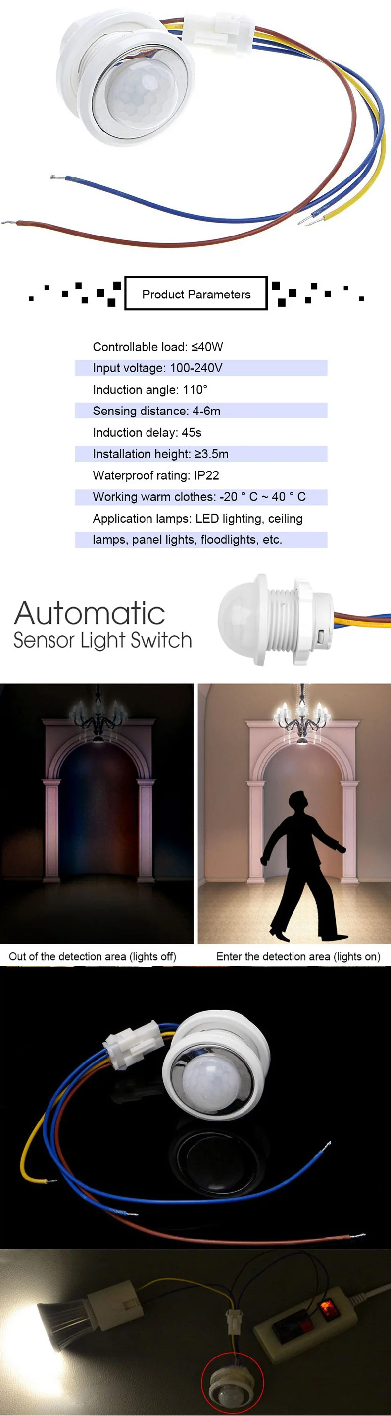 Пассивный инфракрасный мини-датчик, переключатель, умный переключатель 110 В 220 В, светодиодный PIR автоматический датчик, светильник, инфракрасный датчик движения