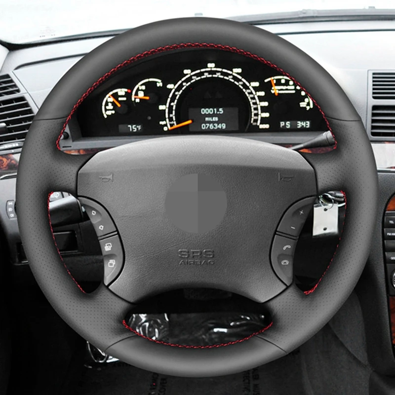 Сшитый вручную черный чехол рулевого колеса автомобиля из искусственной кожи для Mercedes-Benz S-Class W220 S430 S350 S500 S600 2004-2006