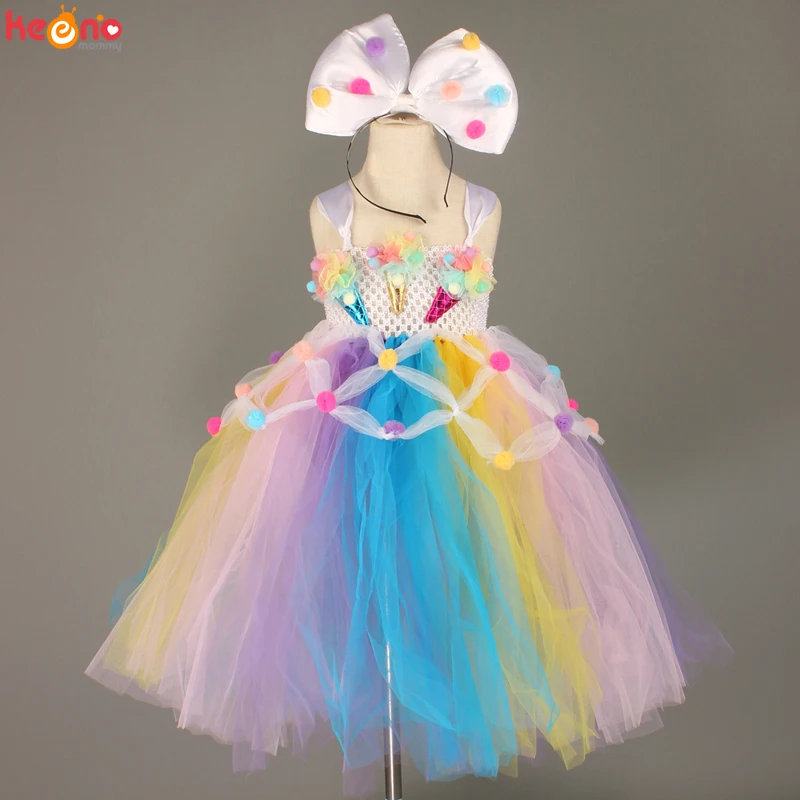 Платье-пачка с бантом для девочек, яркое платье для девочек с мороженым, костюм для фотосессии и вечеринок