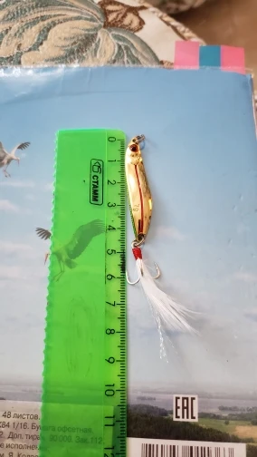 Товар пришёл исключительно неожиданно быстро, всего за 20 дней, спасибо продавцу, приятно иметь дело, осталось испытать на рыбалке, серебристую проверял на саргана, сам удивился отличному результату, правда на второй день не реагировал