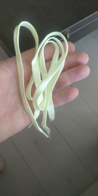 товар шёл 3 недели. в описании не смотрела указана там длинна или нет, оказались коротковаты. один шнурок гладкий ровный, а один с торчащими нитками. светятся хорошо
