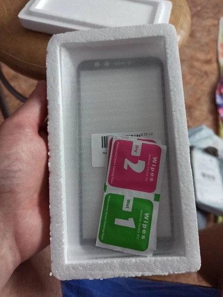 Заказывала в сентябре, получила в октябре, шёл заказ полтора месяца. Упоковка отличная, ничего не помялось, не треснуло. Две салфетки, первая влажная спиртовая, вторая, чтобы протереть насухо. Приклеилось без проблем на 9 лайт Онор, надеюсь прослужит долго и защитит от повреждений.