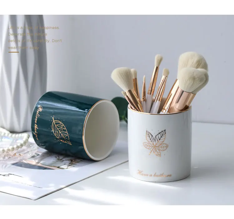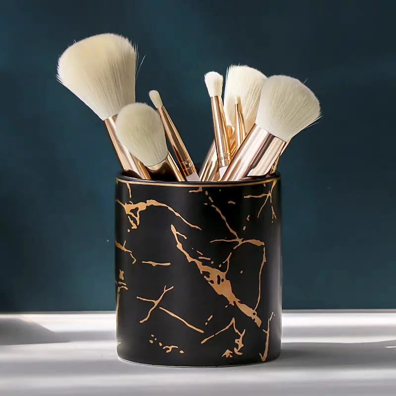 Подставка для ручек с мраморным узором, коробка для хранения косметических украшений, кистей для макияжа, губной помады, керамическая банка, Домашний Настольный Органайзер