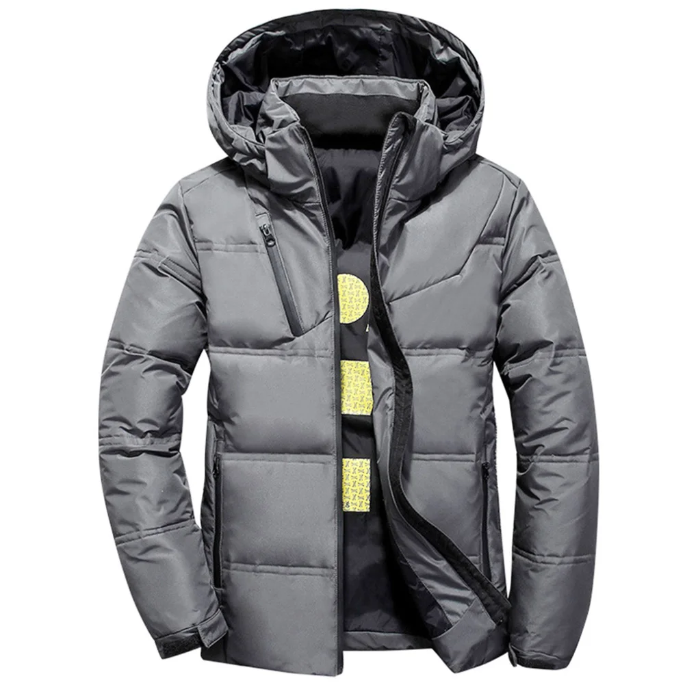 Новинка, мужская зимняя куртка на белом утином пуху, теплый однотон...