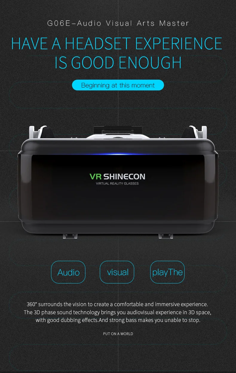 Новые очки виртуальной реальности VR Shinecon G06E, 3D очки, видеофильм для 4,7-6,53 дюймов, картонный шлем виртуальной реальности, смартфон с геймпадом