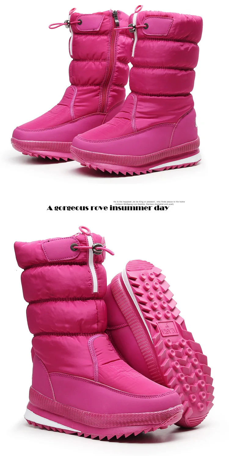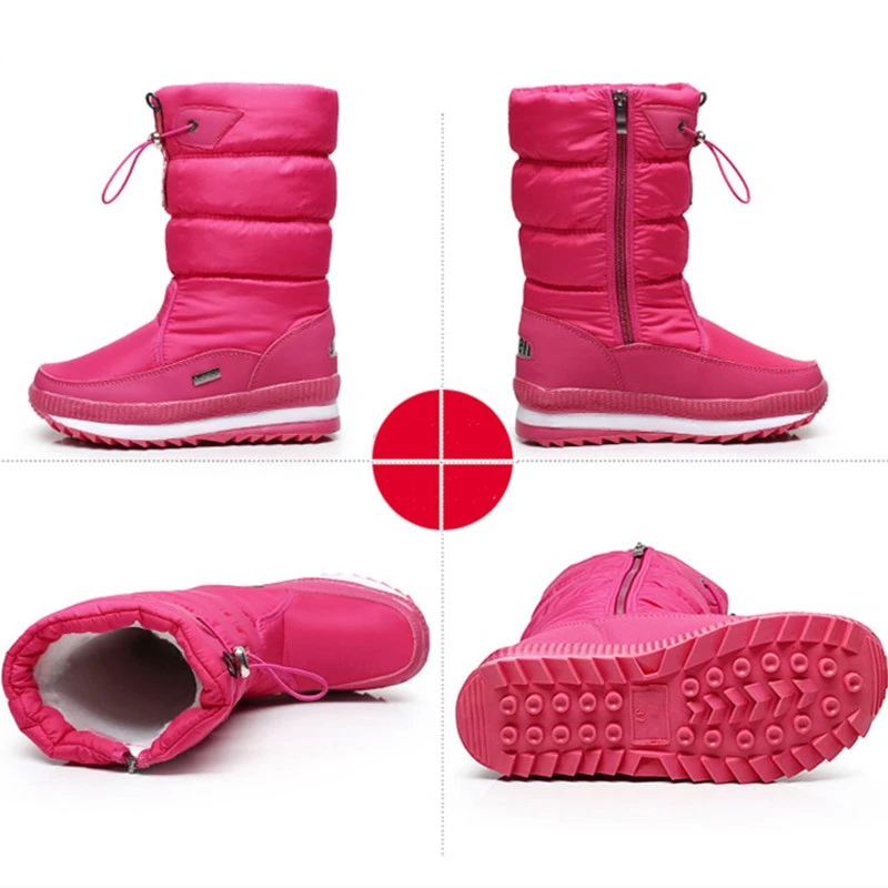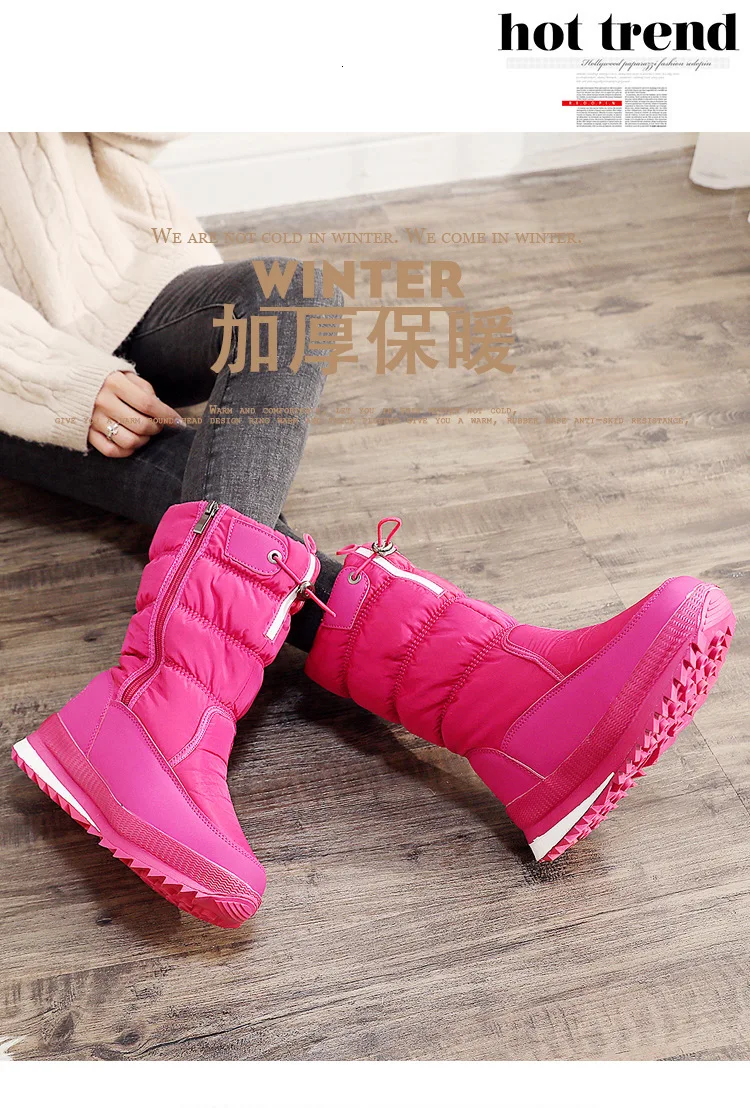 Водонепроницаемые теплые зимние сапоги для женщин и девушек; Бархатная теплая нескользящая обувь с высоким берцем из хлопка; Женские ботинки для катания на лыжах и пеших прогулок