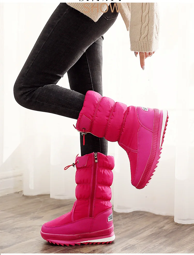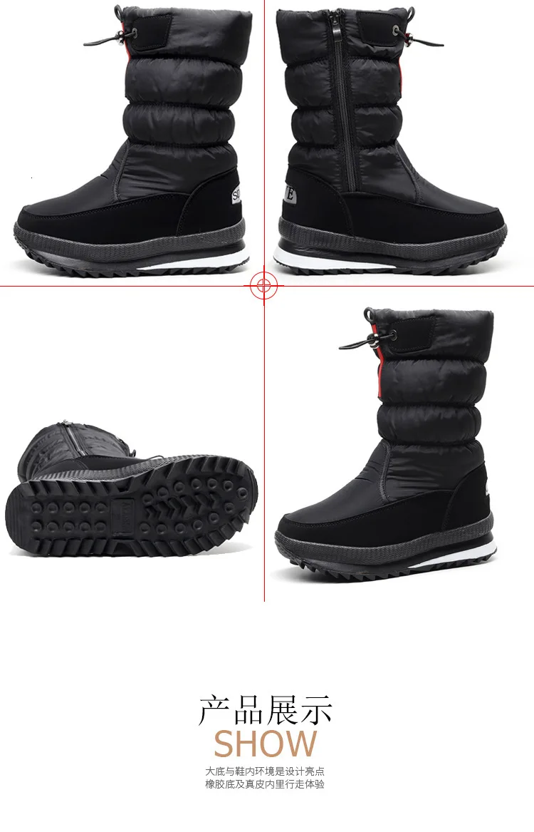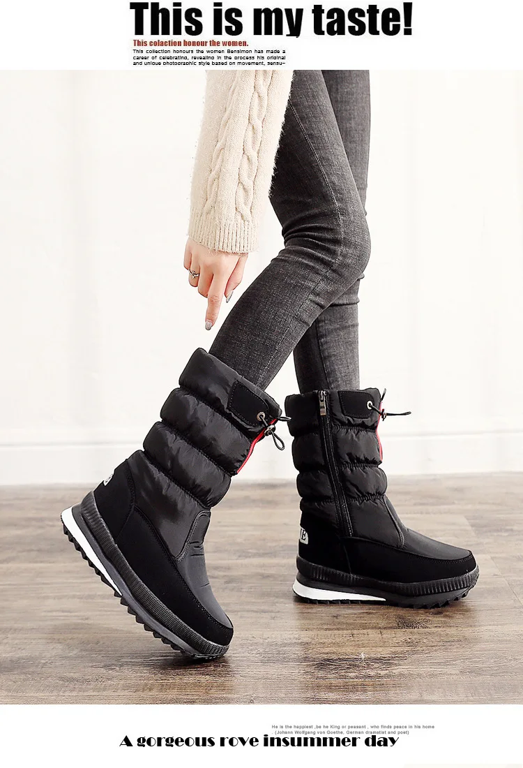 Водонепроницаемые теплые зимние ботинки для женщин и девушек, бархатные теплые Нескользящие высокие хлопковые ботинки, уличные лыжные походные женские ботинки