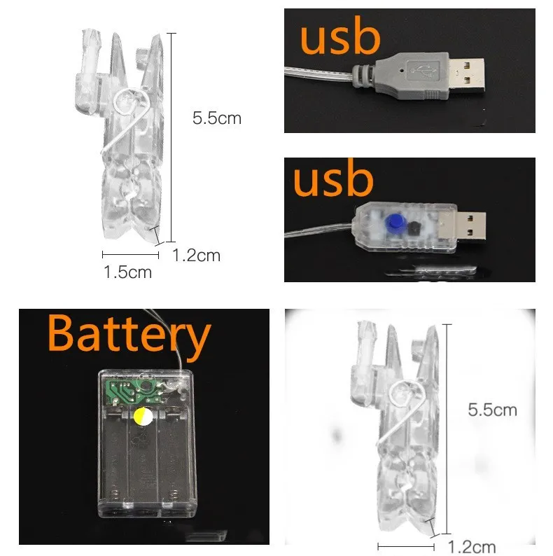Светодиодная гирлянда с зажимом для фото, уличная гирлянда на батар...