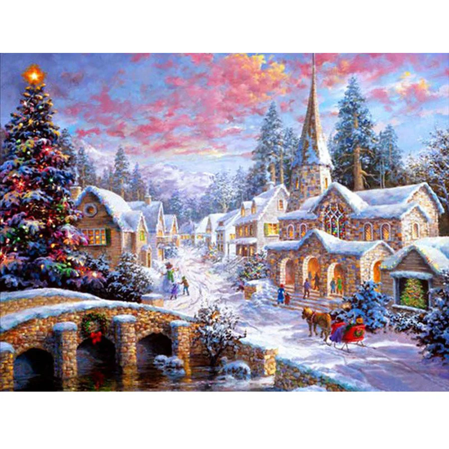 Алмазная вышивка "Рождественский Снежный дом", 5D, квадратная круглая вышивка, AA2263, принадлежности, домашний декор