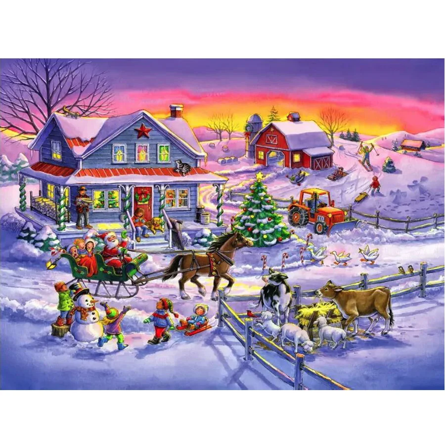Алмазная 5D картина сделай сам с рождеством, мозаика для вышивки, пейзаж, полноразмерная, круглая, Крафтовая принадлежности, домашний декор AA2280
