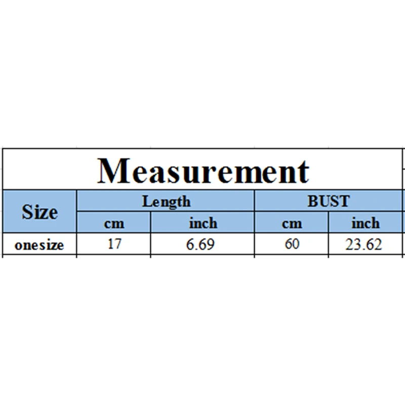 Размер; Длина топа; Обхват груди;Один размер: 17 см/60 см