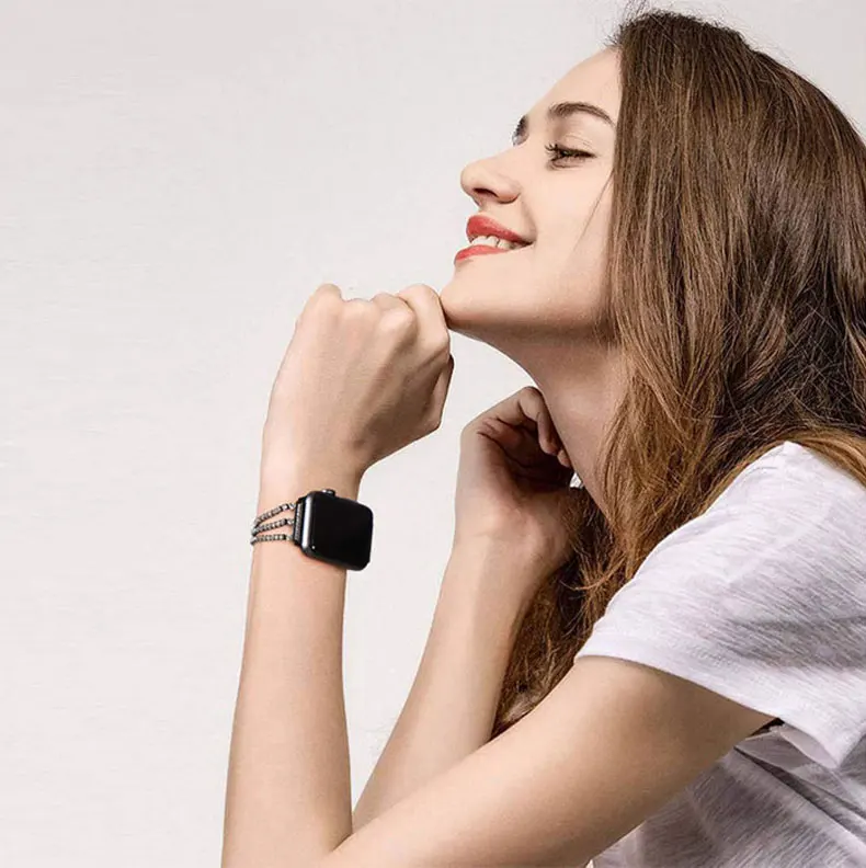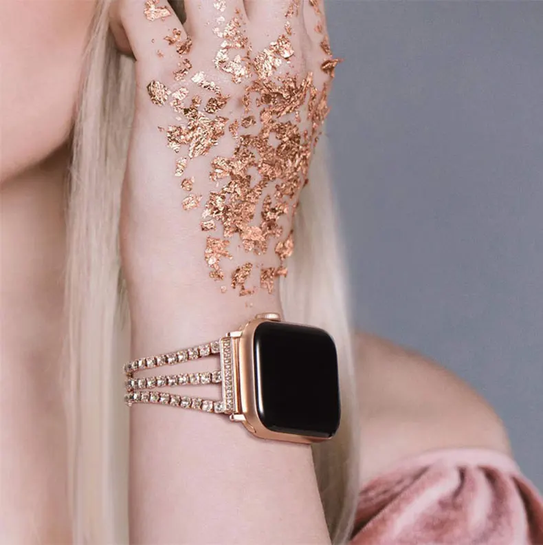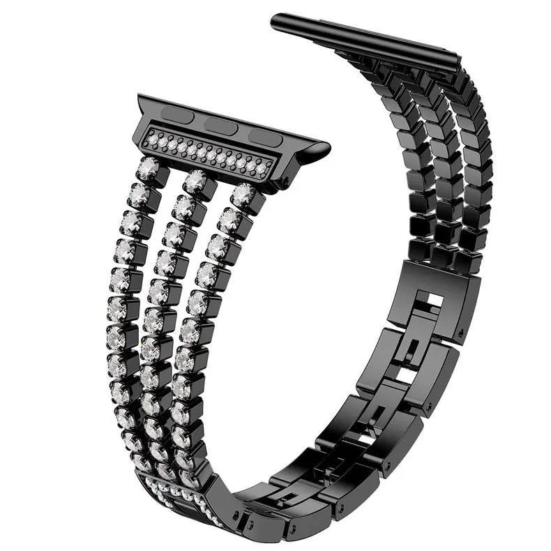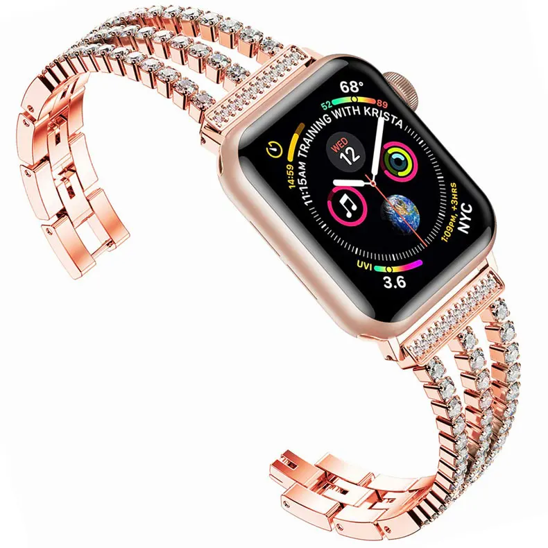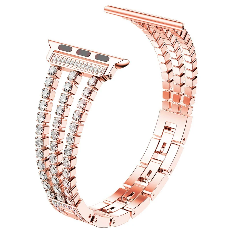 Ремешок из нержавеющей стали для Apple Watch band 38 мм 42 мм 45 мм 41 мм 40 мм 44 мм, женский браслет со стразами для iwatch SE 7 6 5 4 3 2