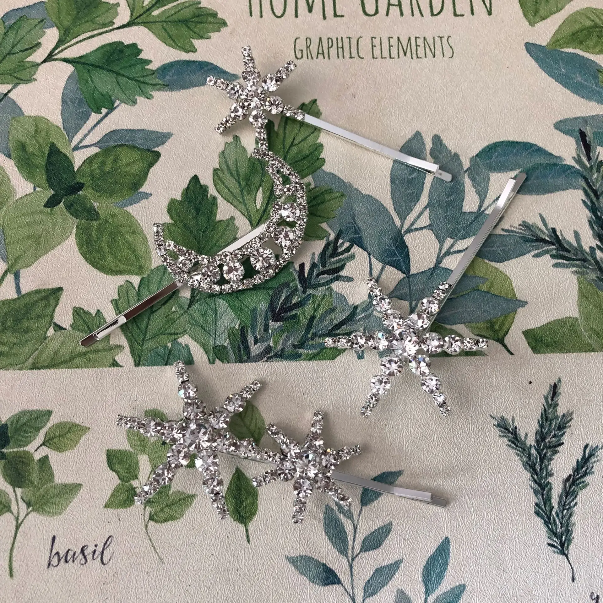 Минималистский Блестящий искусственный бриллиант Стразы шпильки для волос женские свадебные декоративные для банкета одно слово заколка для волос Луна Звезда заколка