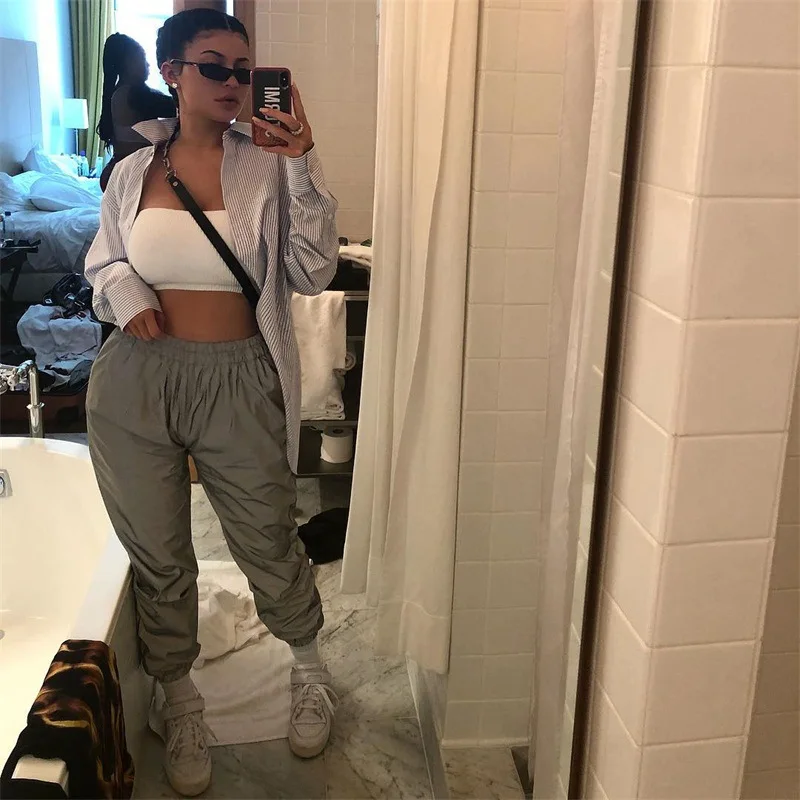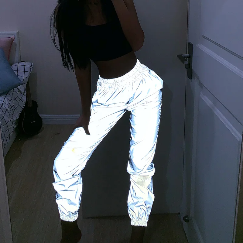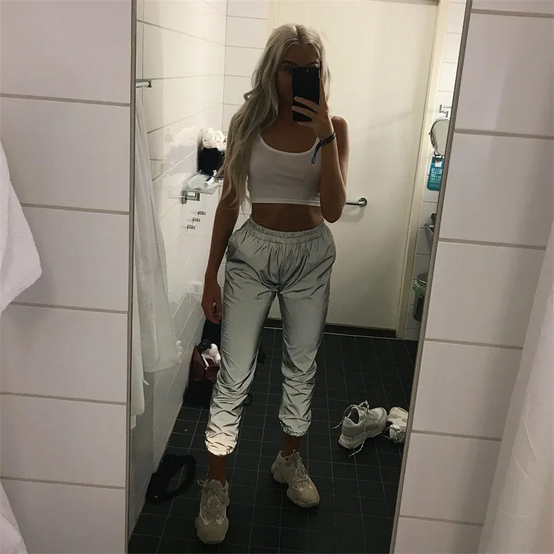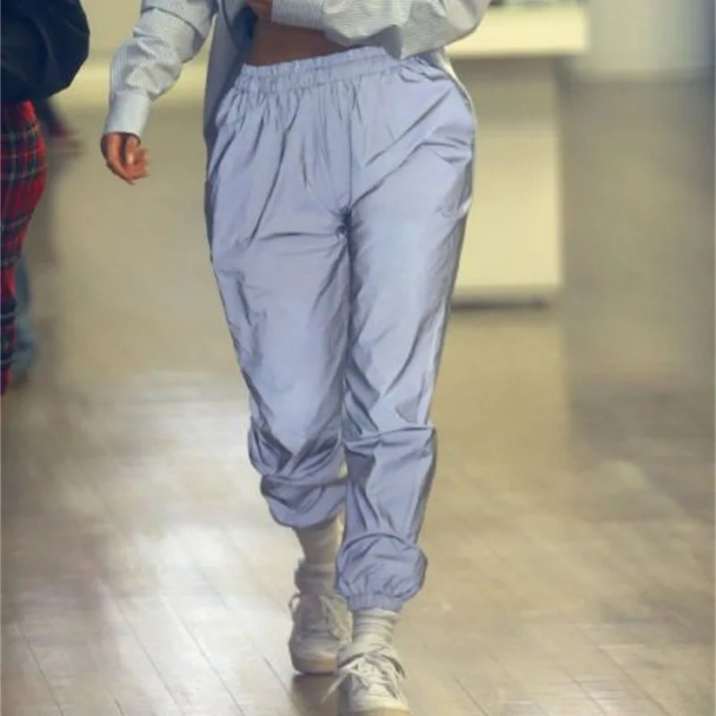 popular elementsStreetwear High Waist Loose Sweat Pants Casual Reflective