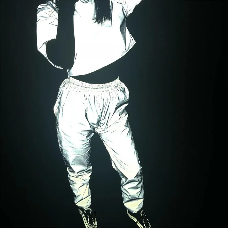 Женские свободные брюки с высокой талией, повседневные Светоотражающие Брюки для бега, одежда для сна, 2019