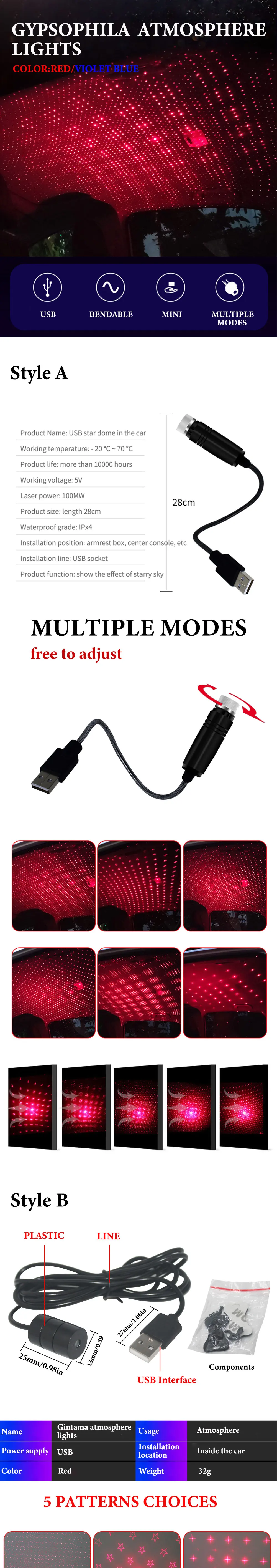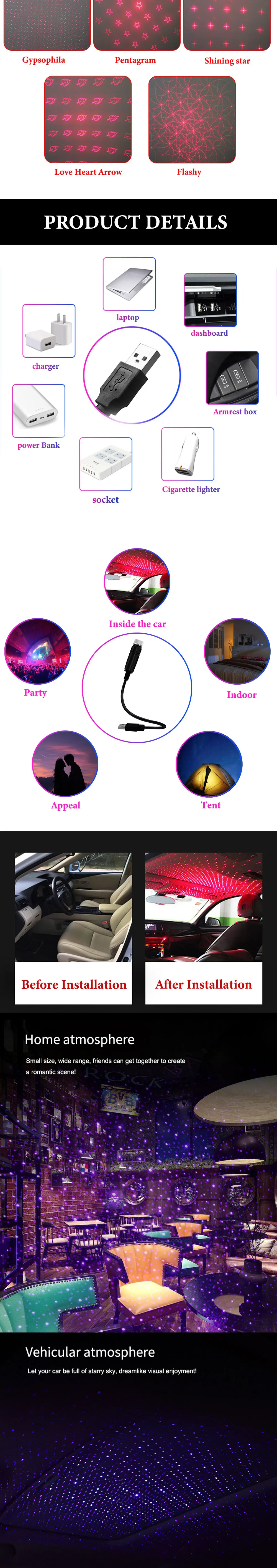 Подсветка салона автомобиля, светодиодная подсветка для автомобиля, USB, ночное освещение, проектор, атмосфера интерьера, галактика Лам