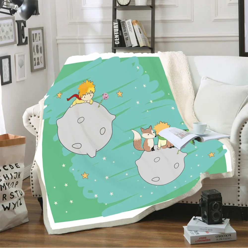 Мультяшное одеяло, Маленький принц, лиса, роза, планета, мягкий шерпа, Флисовое одеяло, офисное, до колена, одеяло для детей, сказочный лист, зеленый