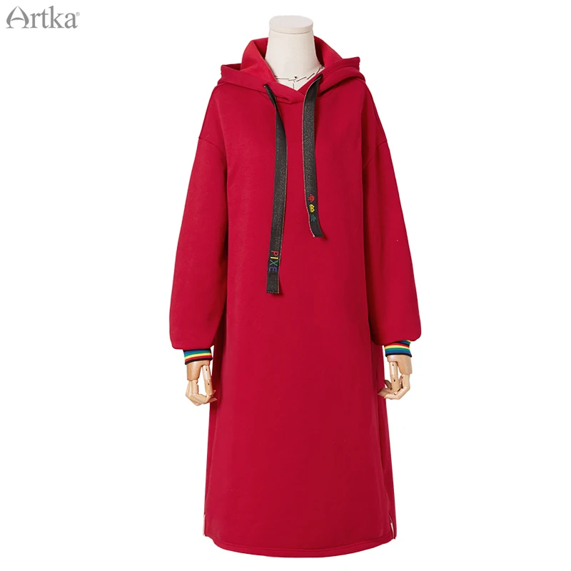 Женский свитшот ARTKA V110091Q, повседневный длинный бархатный свитшот, пуловер с капюшоном, Осень-зима 2019