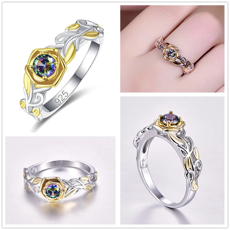 Женское кольцо с разноцветным цирконом, Размеры 6 7 8 9