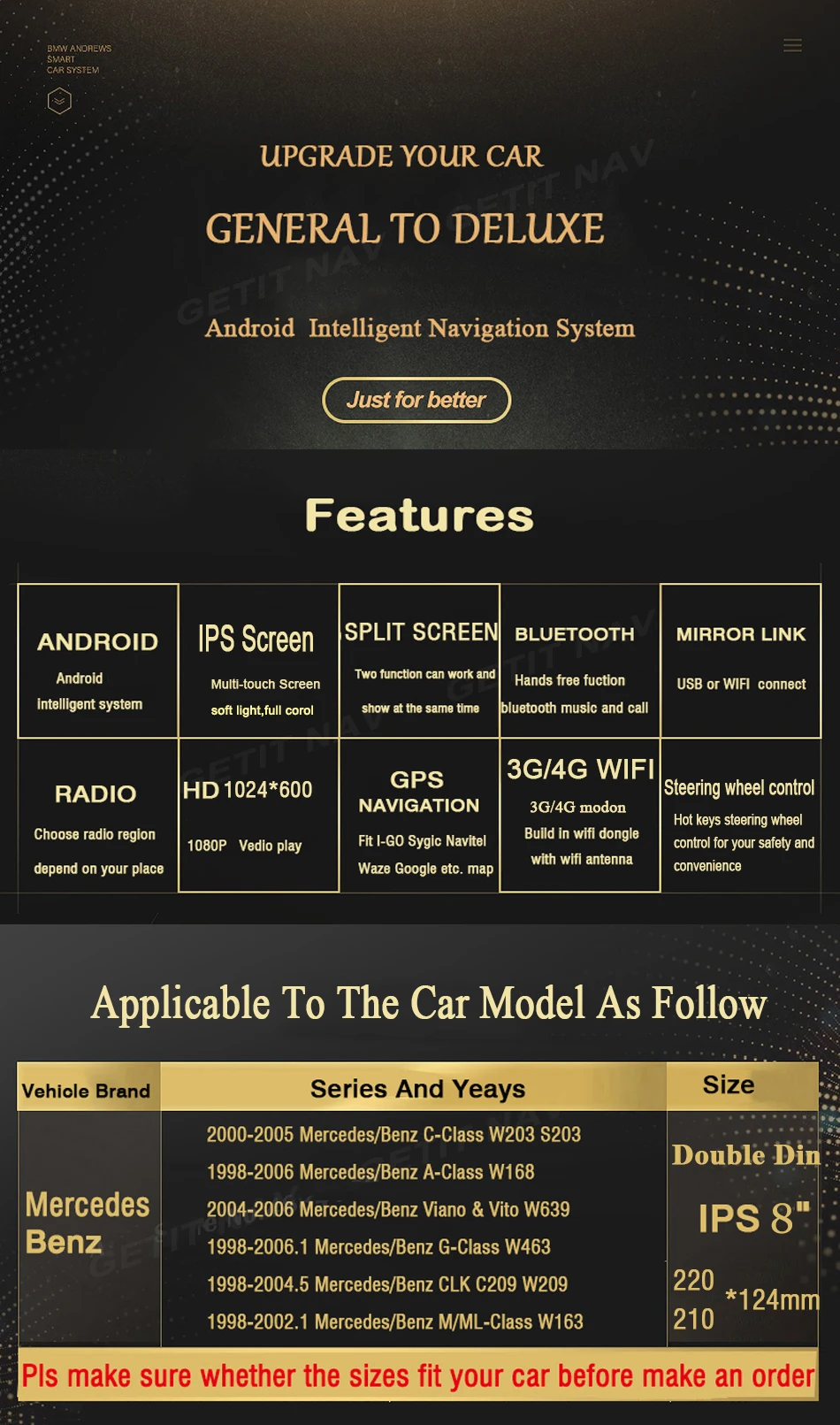 Мультимедийный плеер для автомобиля MercedesBenzW209W203MMLW163VianoW639Vito, Android 10, стерео радио, GPS навигация с carplay