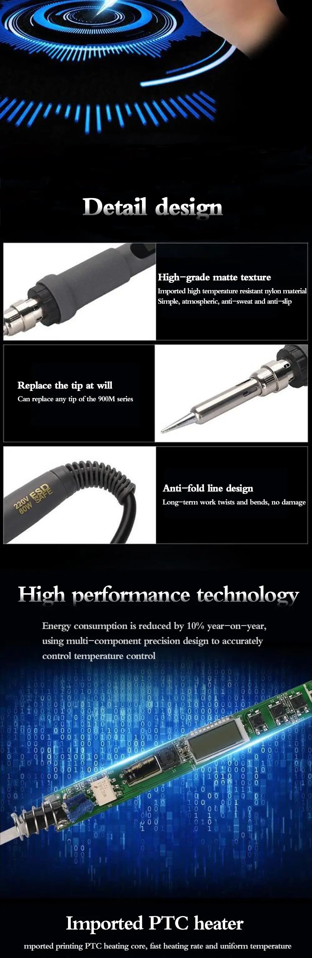 1. Ручка для пайки с регулируемым термостатом и цифровым ЖК-дисплеем маленькая