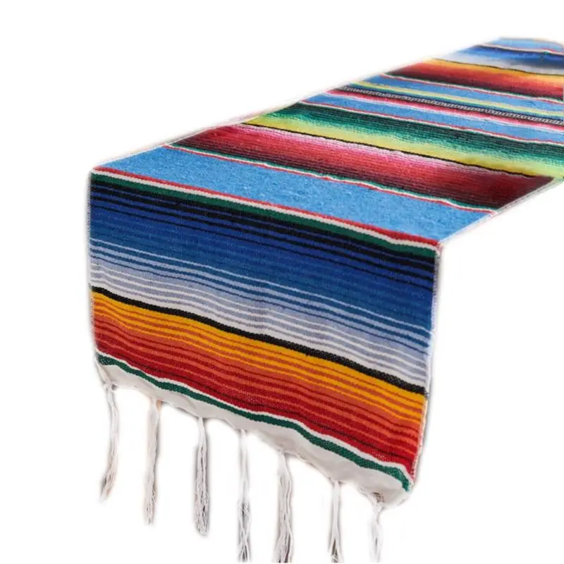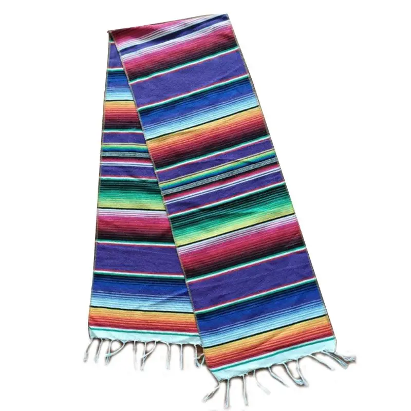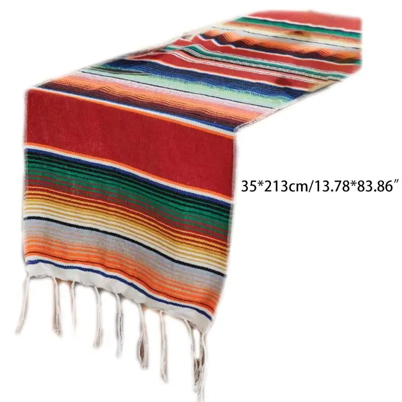 Мексиканское одеяло 35x213 см, яркие радужные полосы, тканая скатер...