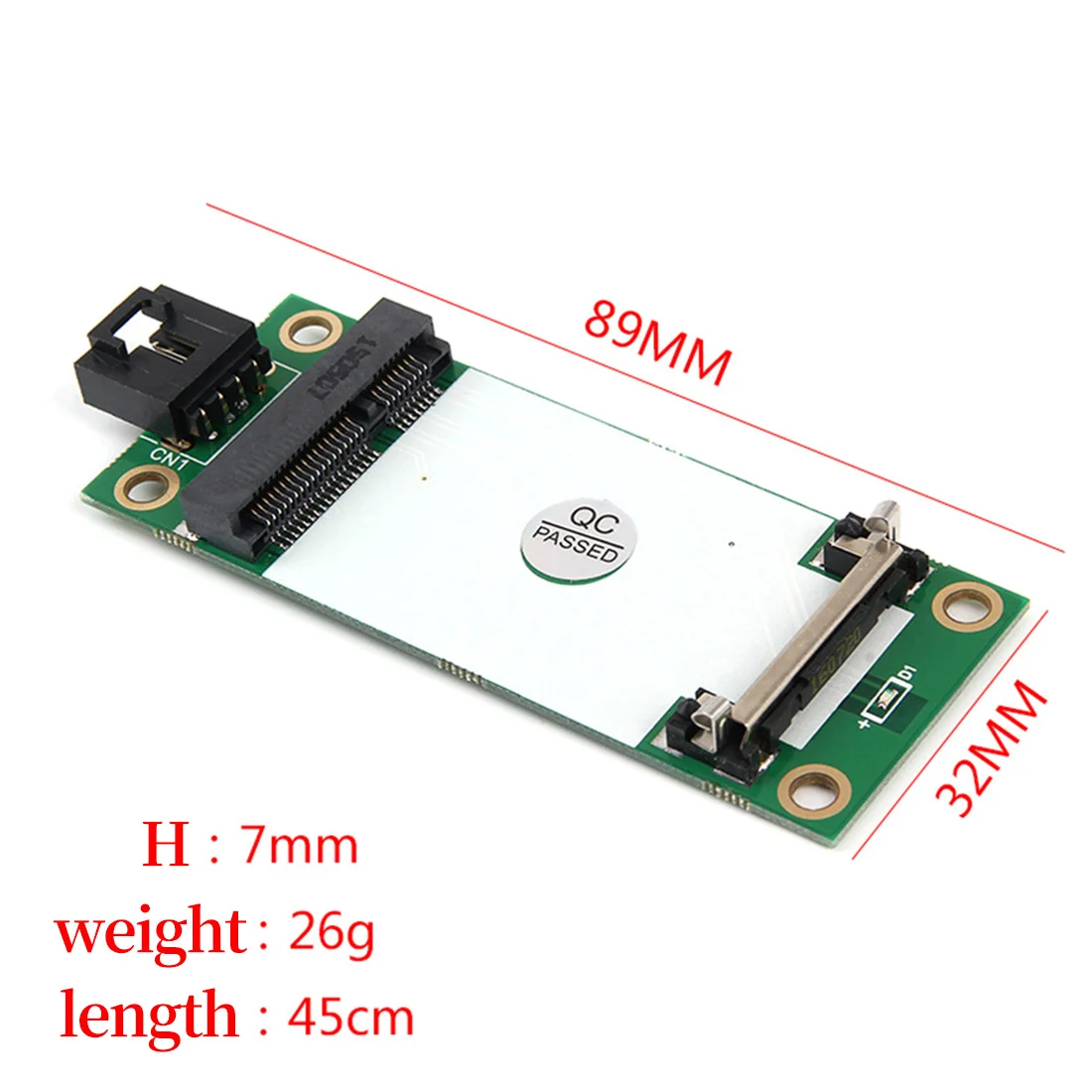 Характеристики: * Размеры изделия: около 8,5*3,2 см * Mini PCI-E разработан для соответствия отраслевой Спецификации версии 1,30 * USB разработан для соответствия отраслевым стандартам USB 2,0, обратная совместимость со спецификацией 1,1 * Данная Райзер-карта для полноразмерных (30*50-51 мм) WWAN / 3G / WiFi модулей (USB шина), соответствующий полуразмеру (30*26,80 мм) перед использованием необходимо установить модули для расширения кронштейна (магазин для продажи) * Светодиодный дисплей в режиме реального времени * Изделие не требует никаких драйверов программного обеспечения