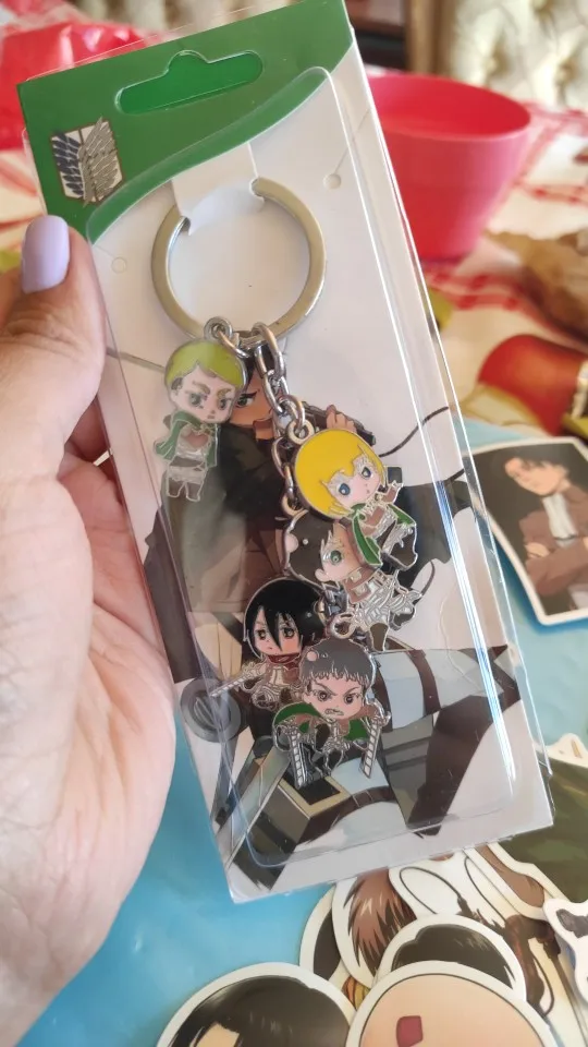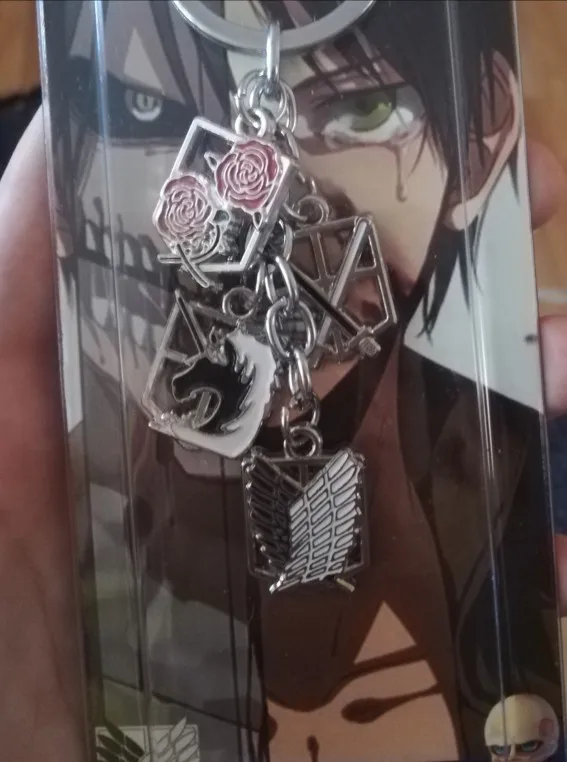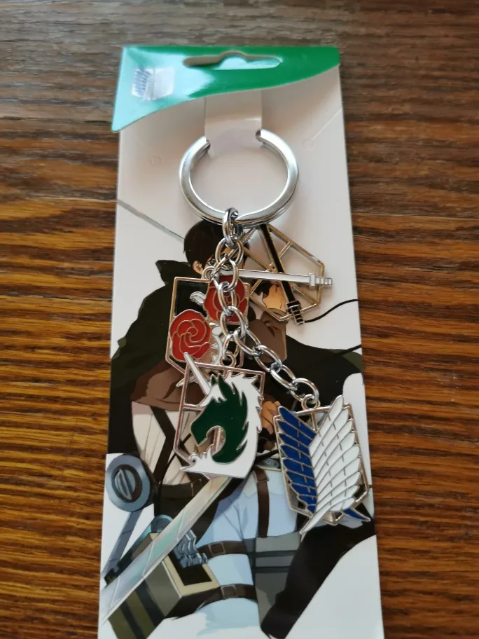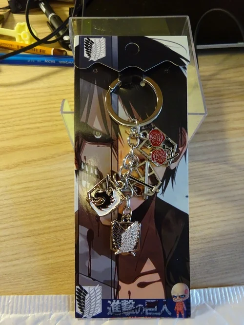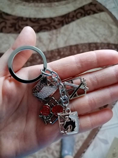 Брелок очень качественный, без единого деффекта: каждая эмблема на месте, "цвет" не выходит за границы, колечки, на которых держатся значки, плотно закрыты и не открываются от сдавливания пальцами - нужно очень постараться, чтобы они открылись и потерялись. Упаковка легко открывается, даже получилось сохранить красивую картинку Эрена на память - может воспользуюсь как закладкой! С продавцом не было нужды общаться, пришло до истечения срока.
