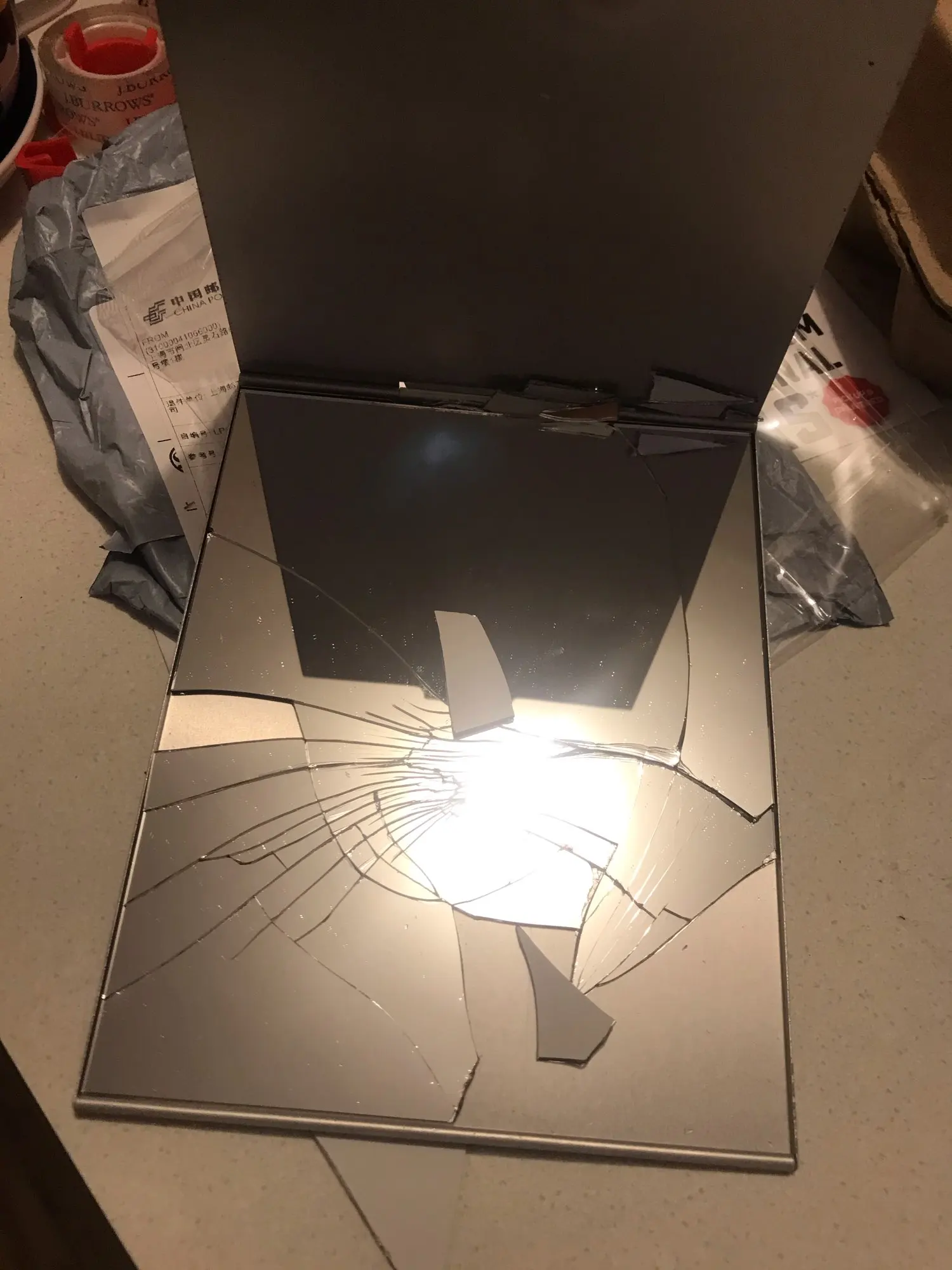 Сломанный по прибытии. (Доставка в Великобританию занимает 2 недели). Я получил возмещение довольно быстро, однако зеркало не было полностью защищено, нет пузырчатой пленки или картона для безопасного путешествия, только зеркало в сумке для доставки! Не очень хорошо!