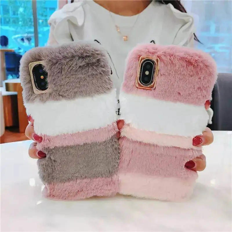 Плюшевый чехол из кроличьего меха для IPhone SE 2022 12 11 13 Pro X...