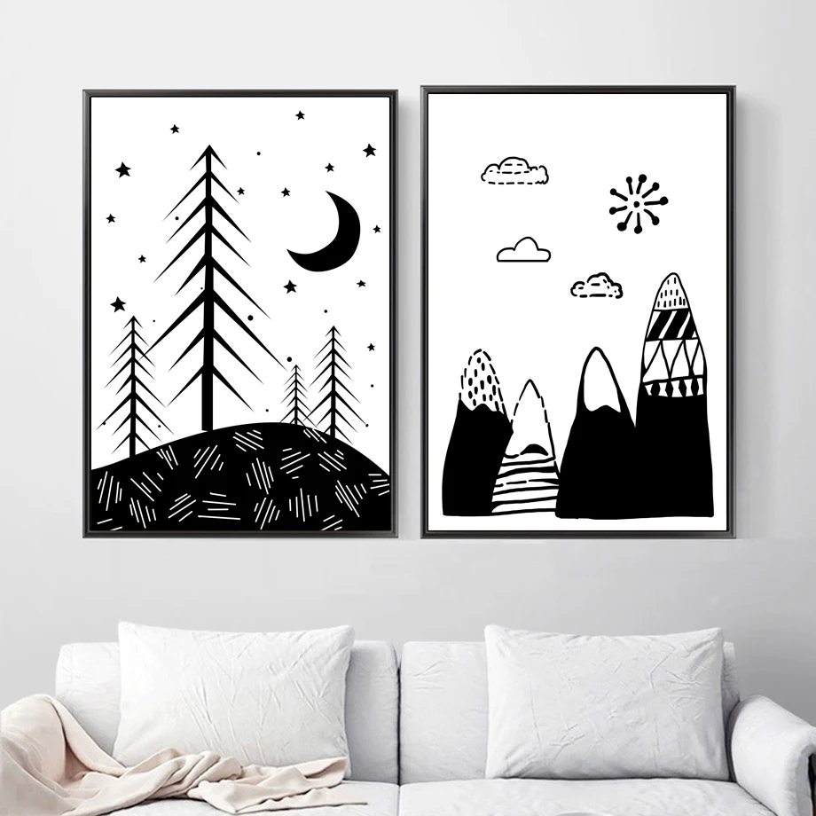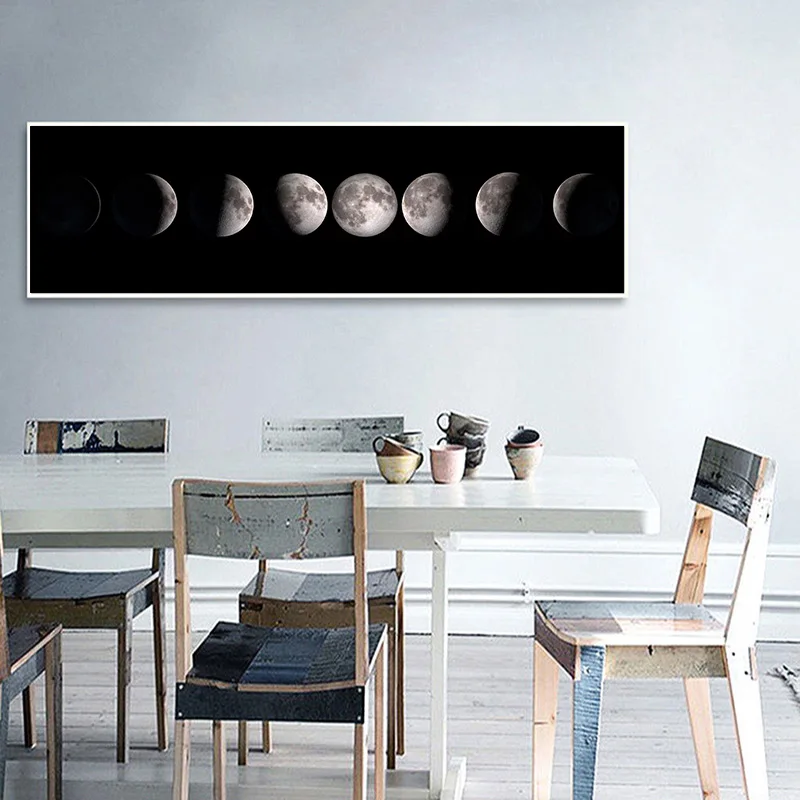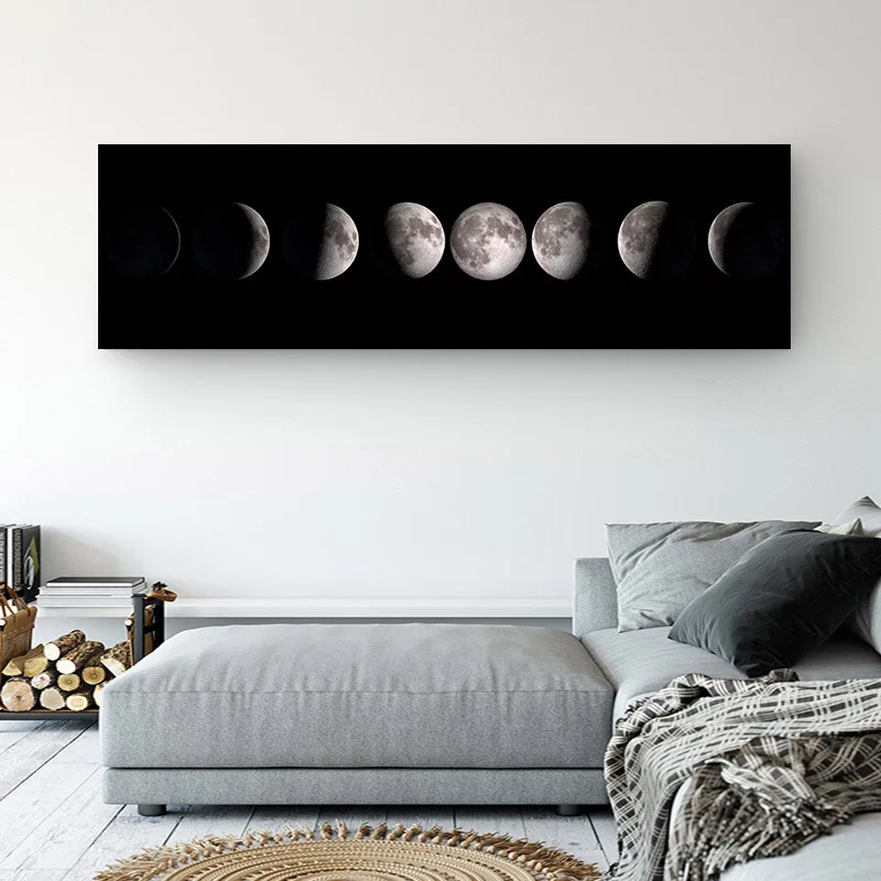 Плакат на холсте Лунная фаза, черно-белый художественный принт Луна, длинная картина, скандинавский декор, абстрактная Настенная картина для гостиной